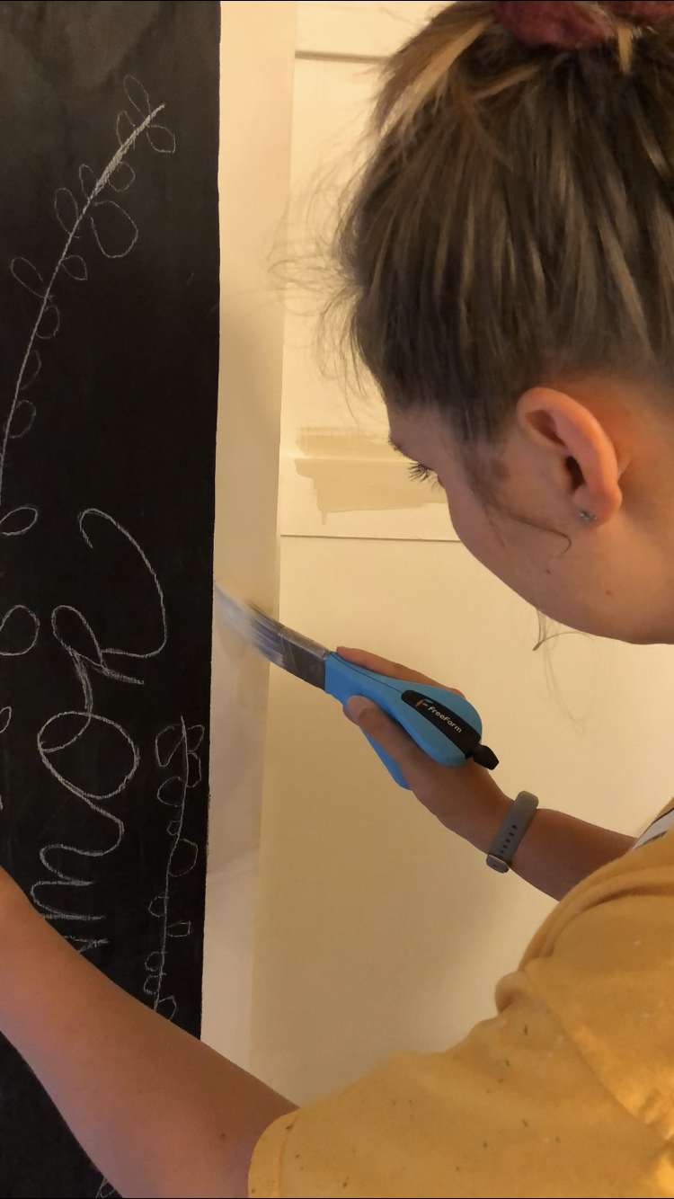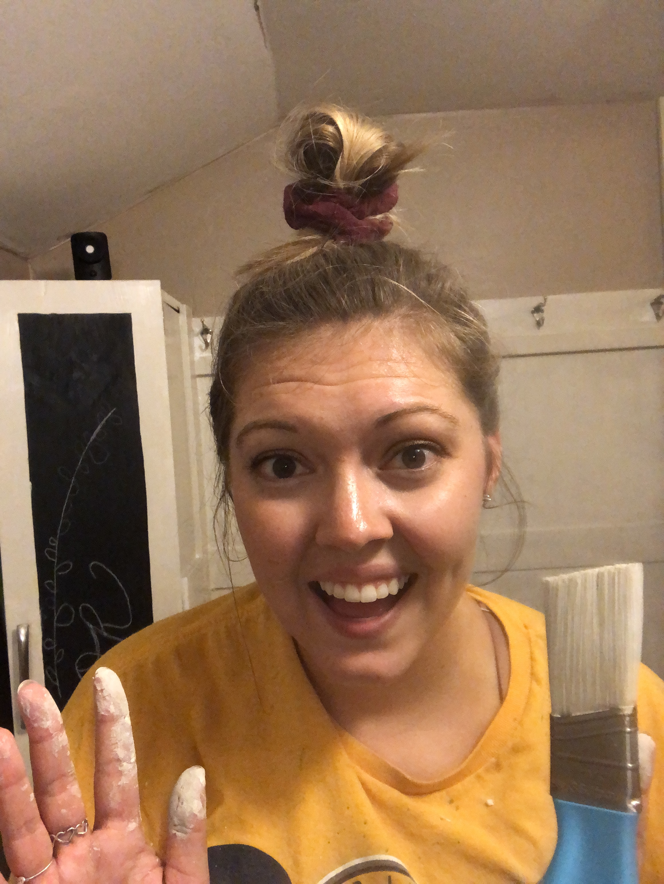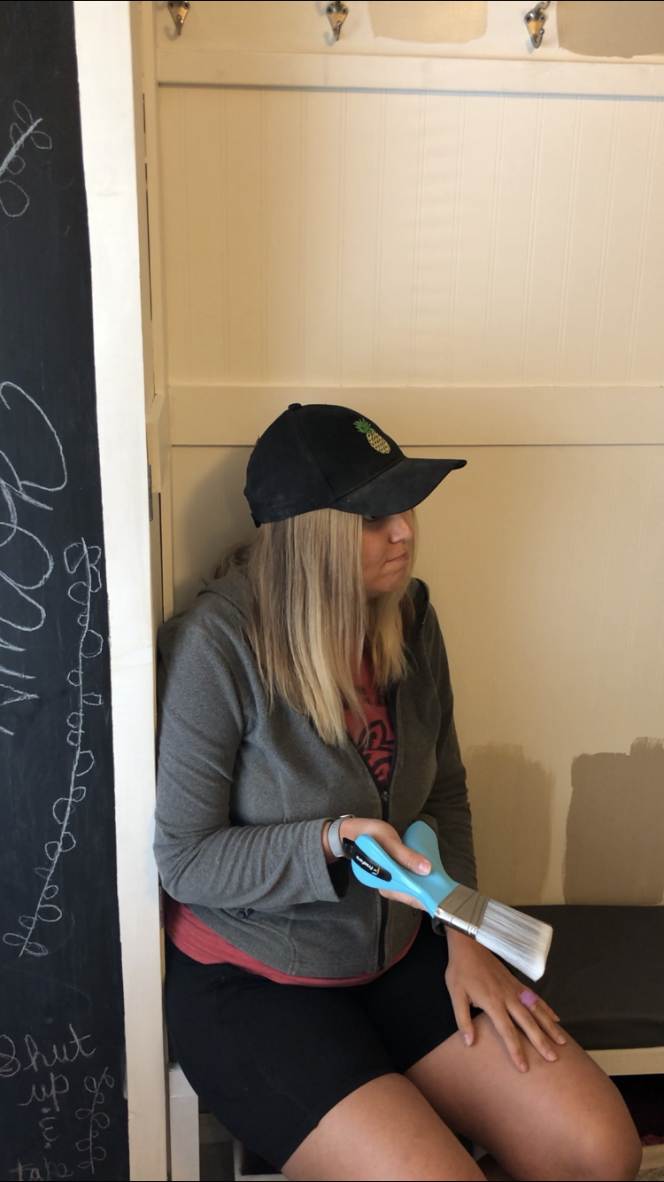 Week six was cabinet painting week, and I’m so excited I got to partner with FreeForm Paintbrush for this project. Their amazing paint brushes have a unique comfort grip, & make quick work of big jobs. I used them for all of my cutting in and detail work. You can buy FreeForm brushes at Walmart.