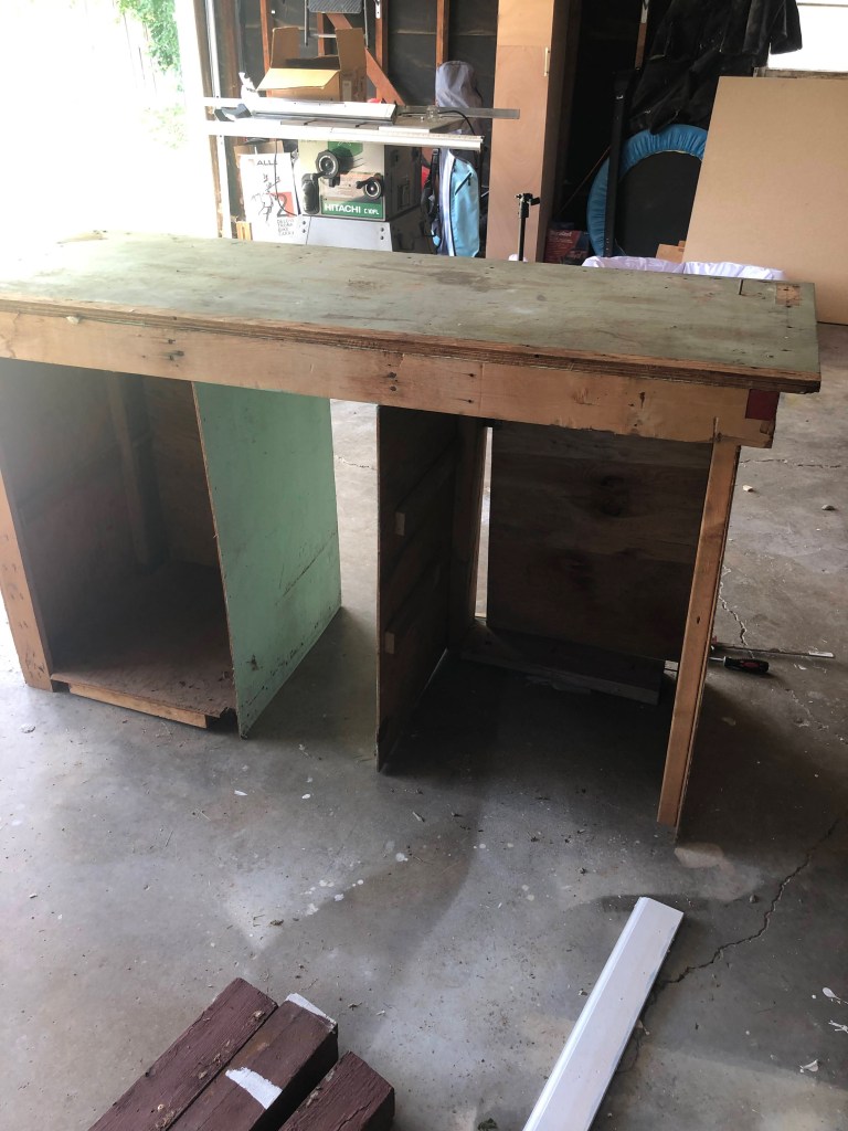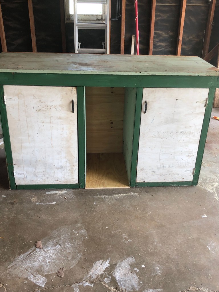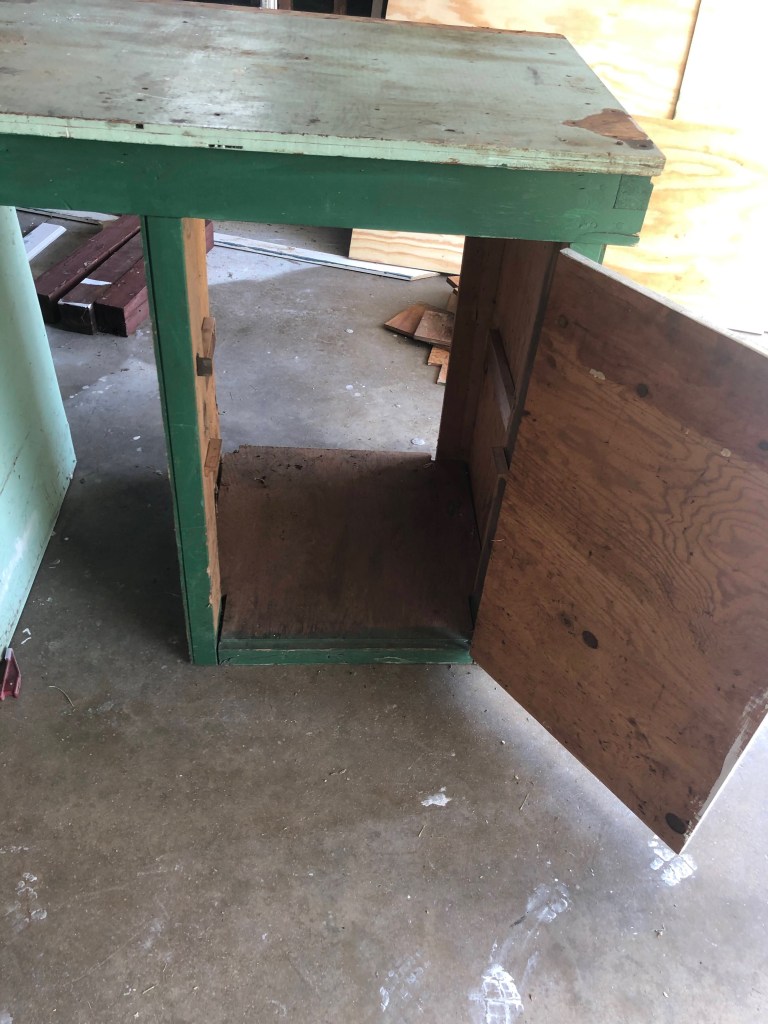 Now if you’ve been following me on social media or read past blog posts, you know that I have pretty much only done builds from the ground up, apart from a few small refresh projects like the concrete coated countertop. That meant that this was a brand-new task for me all together. The cabinet that we found offered a lot of storage but was in rough shape. It takes some imagination to picture a falling apart, paint chipping cabinet as a sleek cart, but I was ready to try this new task.