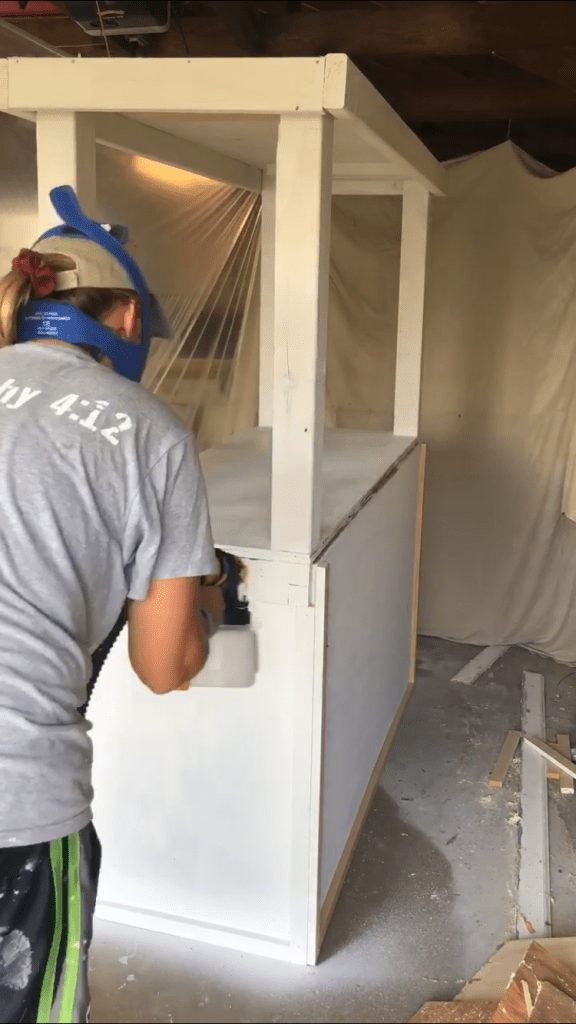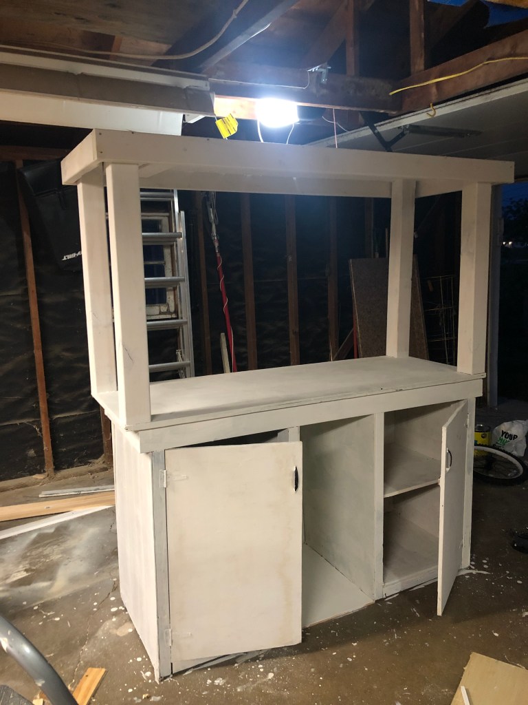Last, most good furniture flips involve some sort of finishing. For this project that meant a good coat of exterior grade white paint on everything, and an epoxy coated countertop. The client & I knew that the countertop would need to be wipeable, and since they wanted to keep it plain white, epoxy was the best weather resistant surface.