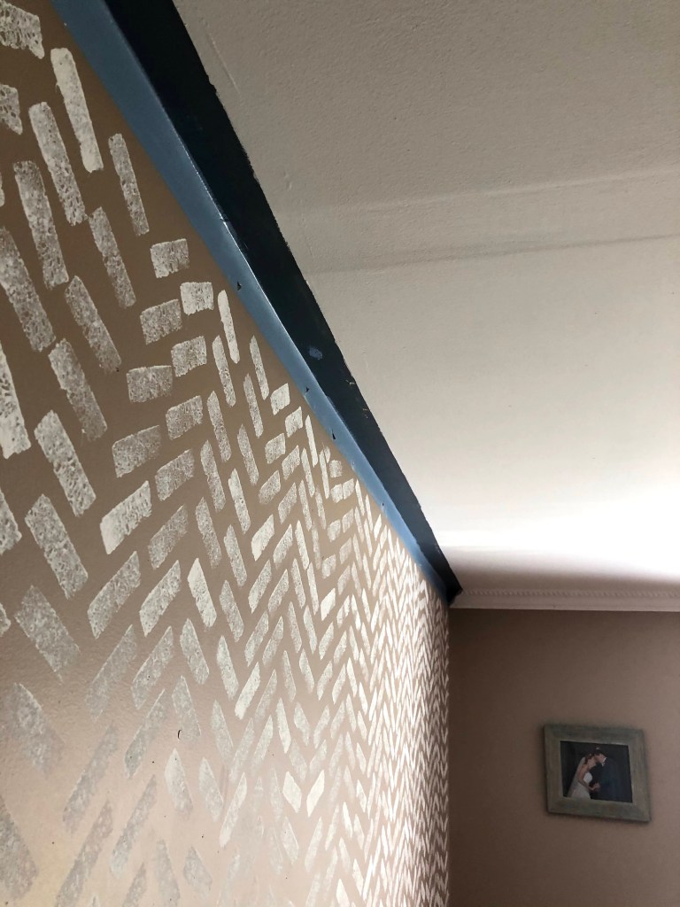 At the beginning of the COVID-19 shutdown, one of the huge internet home projects was sponge painting a wall. This became widely popular because it didn’t require many supplies, and was very cheap. Knowing I wanted to change this wall in our bedroom, I decided to try it. I remember feeling desperate to do something creative after being stuck at home. Unfortunately, I didn’t measure where to put the sponge marks, and it looked way too busy. I knew this was a temporary.