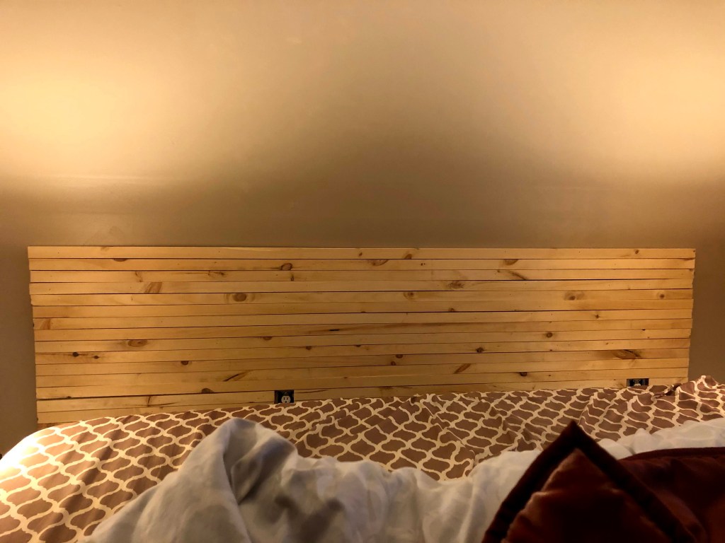 After living with the sponge paint that I hated for about 6 months, I finally decided it was time for a permanent change. Dylan & I decided on a skinny lap wall. Instead of covering the whole wall, I went with more of a headboard wall look, because again, I didn’t want it to feel too busy.