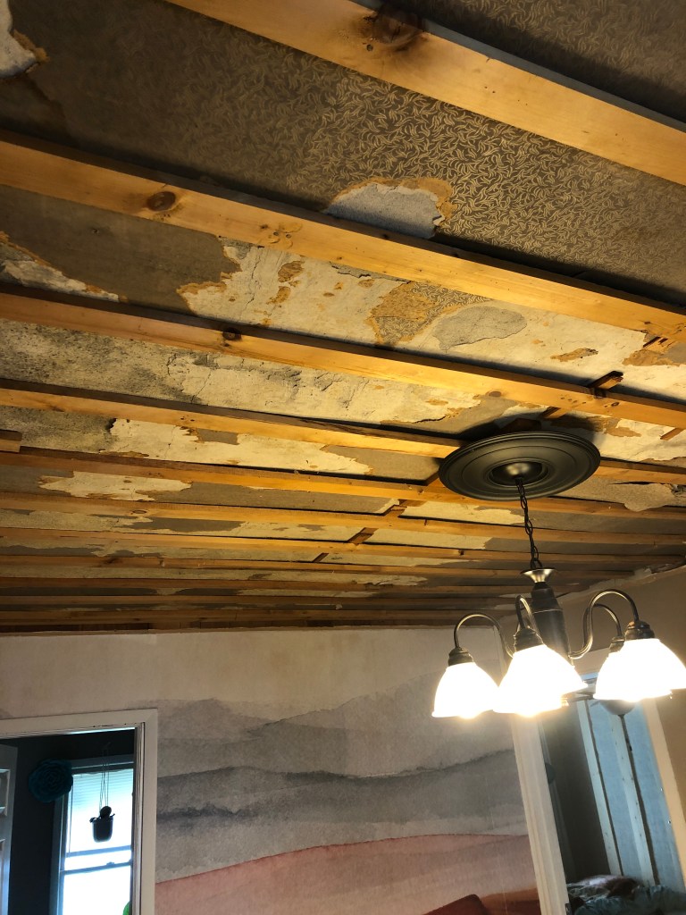 It started with a punch as I demoed acoustic ceiling tiles, took out an ancient light fixture, and hung drywall. Then I spent hours taping and smoothing the drywall, adding a wood art feature and painting it pink. Don’t remind my arms of those weeks, I think they’re still mad at me for how much work I made them do.