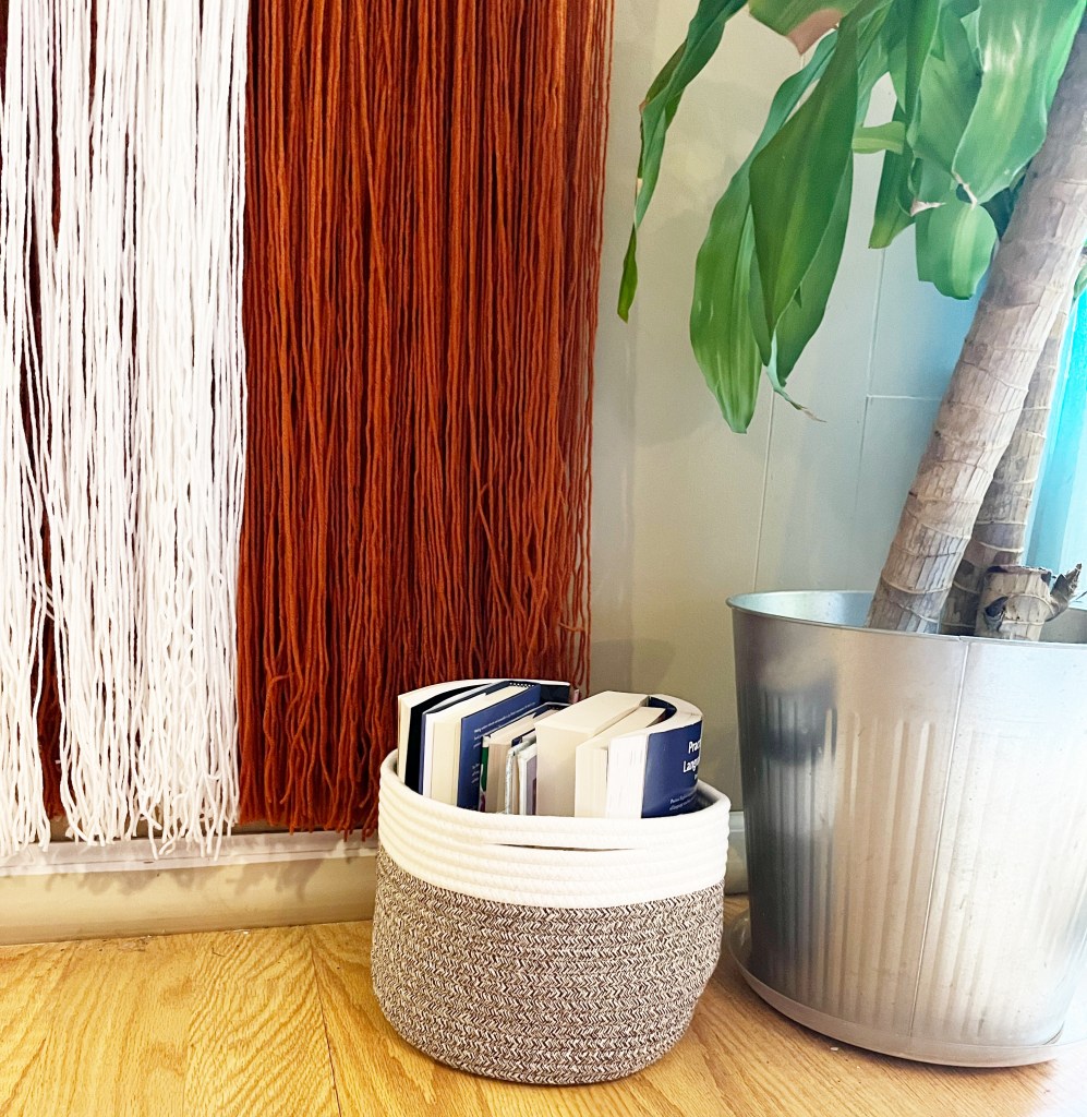 It’s easy for all these blankets to pile up around the house, and they really need a designated space beside folded on the couch. I get one or two draped for style, but not ten, haha. The large basket from the Goodpick is perfect for even my largest of blankets, which is impressive. Again this is storage that’s out in the open, so I love that it sort of fades into the space as a design element here, adding style, color, & texture. All while being extremely functional, & still housing my favorite blankets to cuddle up under with the dog after a long day.
